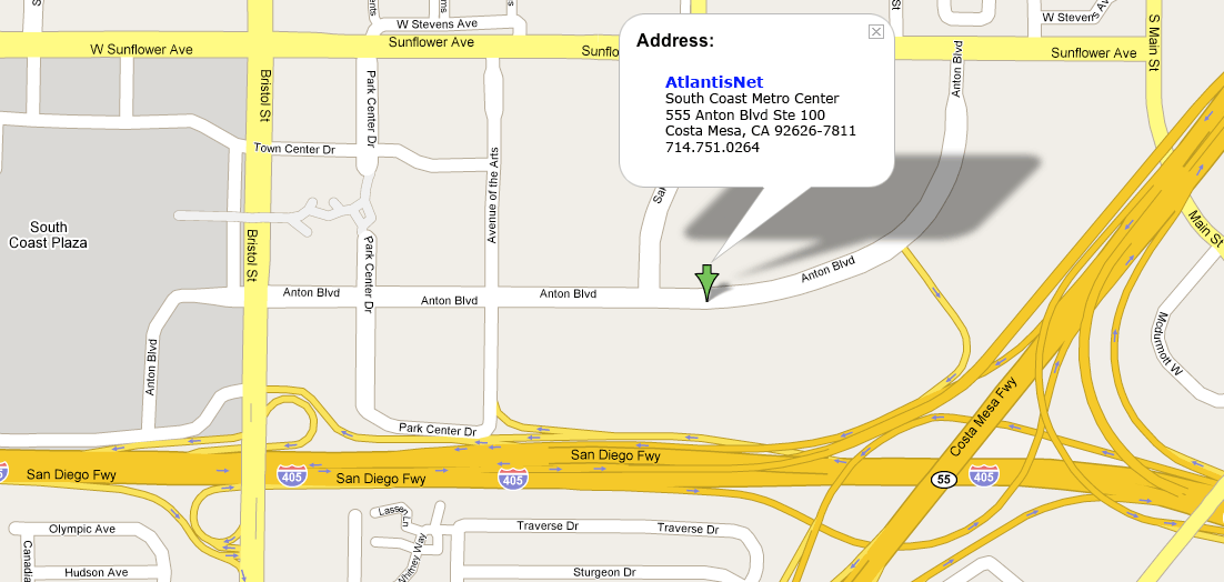 is located close to South Coast Plaza at the intersection of Anton Blvd. & Sakioka Dr. in the South Coast Metro Center campus. The South Coast Metro Center is located where the 405 and 55 freeways meet.